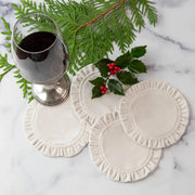 Arte Italica & Crown Linen Designs | Round Ruffle Coaster Set (4), Velvet Red