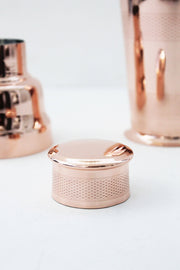 • Includes a heavy gauge copper jigger with an engine-turned design and brass accent.