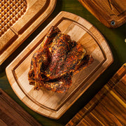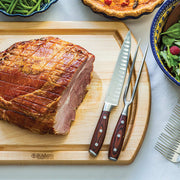 Your holiday turkey deserves the royal treatment, and this reversible carving board from J.K. Adams delivers. Crafted in Vermont from sustainably harvested maple, it arrives finished with mineral oil and beeswax for that smooth, durable surface you'll love. Flip it over: one side has a handy poultry well to keep birds steady while you carve, the other a juice groove perfect for catching every drop from roasts. We chose it because it handles weeknight chickens or Thanksgiving feasts with ease, and that classic maple patina just gets better over time. Stable, gorgeous, and built to become your kitchen heirloom. Grab this 20x14 inch beauty and make carving a joy.