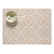 Imagine your table wrapped in the warm glow of butterscotch, where lively rows of interlocking circles nod to vintage American coverlets. Chilewich captures that overshot weave, with yarn shooting over the base for a decorative pop that feels both historic and fresh. We chose these rectangle placemats because they turn everyday meals into something special, laying down a refined backdrop that catches the light just so. Crafted from their signature woven vinyl, they wipe clean in seconds, letting you linger over brunch or weeknight dinners with friends. That cozy butterscotch hue brings inviting elegance to any spread, blending sleek modern style with timeless charm. Set your table, gather your crew, and let the good times unfold.