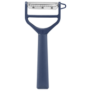 This T shaped peeler is unlike any other in your kitchen drawers. Equipped with a duo of stainless steel blades, the T-DUO peeler can both peel and julienne with a flip of the tool. A micro-serrated blade is very efficient on all vegetables and fruits, including those with thin or smooth skins (mangoes don’t stand a chance), while the Julienne blade easily creates fine strips of anything from zucchini to carrots. A built in side cutter quickly removes potato eyes or blemishes.