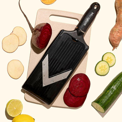 View full detailsThe Microplane Adjustable V-Blade Mandoline Slicer is a culinary must-have, designed to enhance kitchen efficiency and safety. Crafted with a surgi...