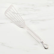 Ever watched a perfect fillet fall apart mid-flip? Not anymore. This 13-inch stainless steel fish spatula from Hestan Provisions glides under delicate fish, tender veggies, or juicy burgers like it was born for it. We chose it because Hestan's chefs and engineers nailed the details: that flexible brushed spring steel blade with its smart offset angle, beveled edge, and perfect flex keeps everything intact, use after use. The ergonomic 18/10 stainless handle sits balanced in your hand, polished to a gleam, complete with a hanging loop and signature monogram. Pros in Michelin kitchens swear by it, but we love it for your weeknight wins too. Effortless flips, zero sticking, endless kitchen joy. Grab yours and master the turn!
