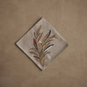Imagine the satisfying crunch of fresh-baked bread emerging from the oven, golden sheaves of wheat nodding in the breeze just beyond your window. Coral & Tusk bottled that harvest glow in these embroidered napkins, stitching wheat in shimmering gold metallic threads laced with warm orange, cool blue-gray, and deep brown accents to evoke abundance and quiet plenty. We chose them for the way they ground your table in seasonal gratitude, whether you're layering them under a loaf for family supper or bundling silverware for a crisp fall lunch.