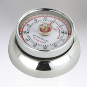 This retro kitchen timer in classic white adds a touch of vintage charm to your kitchen routine. Crafted from durable all-steel with a smooth painted finish, it stands up to daily use while looking sharp on any counter or fridge. Set it for up to 60 minutes with a simple twist of the knob, ideal for timing bakes, boils, or braises. The built-in magnet keeps it handy on metal surfaces, and the clear ring ensures you hear it every time. We pick pieces like this because they combine function with fun design that lasts.