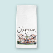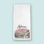 - 28"x28" cotton flour sack tea towel with watercolor Sanford Stadium print
