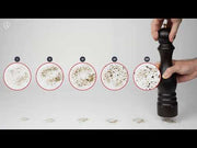 Over 30 years after its debut, the Paris mill remains a bestseller, known for its timeless design and exceptional functionality. The 12" u'Select mills offer an increased storage capacity, ensuring you have plenty of rock salt and pepper on hand for all your culinary needs. Crafted with ergonomics in mind, its comfortable shape and elegant gourmet chocolate color add a touch of sophistication to any kitchen. Featuring Peugeot's renowned stainless steel grinding mechanism, this mill is designed specifically for grinding dry rock salt and various peppercorns up to ¼ inch, as well as dried coriander seeds. The patented u'Select grind adjustment ring allows users to choose from six precise settings for the perfect grind, making it an essential tool for home cooking enthusiasts.