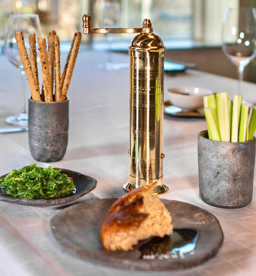 View full detailsTransform your meals with the stunning 10" 'Large Brass Mill' from Rune-Jakobsen Design. This commanding pepper grinder, crafted by Greek experts '...