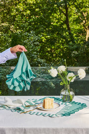 Misette - Jardin Embroidered Linen Scalloped Stripe Napkins with Color Backing in Green (Set of 4): Green / 1 Set