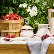 Picture the soft blush of rosy checks warming your stovetop as steam curls up for that first steep of chamomile or a quick French press jolt. We fell for MacKenzie-Childs' Rosy Check Enamel 3 Quart Tea Kettle because it turns boiling water into a gentle invitation to pause and savor. They've layered those hand-painted, color-dragged checks across heavy-gauge steel in subtle pink shades that feel both fresh and familiar, then finished it with a bronzed stainless rim for quiet polish. The wood handle stays cool in your grip, and the brass-lidded top with its clear glass knob lets you watch the bubble without lifting a finger.