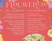 These crackers don’t just sit pretty on your board; they bring a sprinkle of joy to any occasion, from casual snacking to elegant entertaining. They're the unsung heroes of the snack world, turning everyday grazing into an extraordinary experience. So, why not treat yourself and your guests to a pantry stocked with these delightful gems? Go on, add a little flower power to your next gathering!