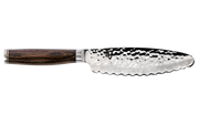 Picture the satisfaction of slicing into a just baked sourdough, watching perfect, even wedges emerge without a single tear or crumble. That's the quiet genius of Shun's Premier 9-inch Bread Knife, where thoughtful Japanese craftsmanship turns a simple task into something almost meditative. We can't get enough of how Shun crafts it with a VG-MAX core, sheathed in those stunning 68 layers of Damascus steel, finished with a hammered tsuchime pattern that not only turns heads but helps food slip away effortlessly.