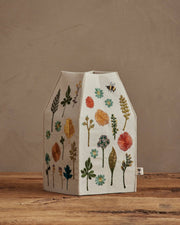 Find your favorite flowers on this felt tissue box cover! Bright green sprigs, forget-me-nots, violets, and dandelion flowers are stitched all over our best-selling tissue box cover. Embroidered on felt.
