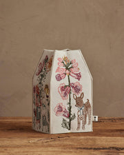 This floral tissue box cover adds brightness to your decor! Embroidered on all sides find fox, bunny, cat, baby chick, fawn and lamb among the blooming bluebonnets, lilies, daisies, cosmos and poppies. A sweet addition to the powder room, nursery, or bedside table.
