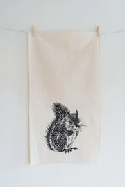 Hearth and Harrow | Organic Cotton Squirrel Tea Towel in Grey - Woodland Animal