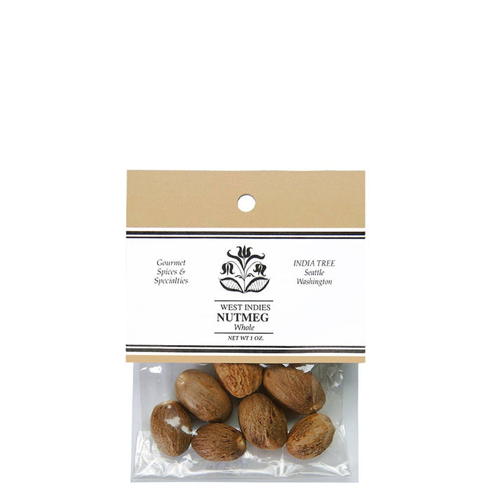 Discover India Tree Whole Nutmeg in a Small 1.8 oz Jar! These premium whole nutmegs, the seed pits of a plum-like fruit, offer rich aroma and delicate flavor when freshly ground. Perfect for baking, flavoring vegetables, meats, cheese, mulled cider, eggnog, hot chocolate, or bechamel sauce. Sourced from the West Indies, they bring a touch of historic luxury and gourmet versatility to your kitchen.