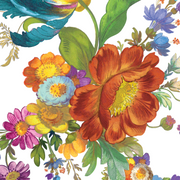 Here's your chance to bring home a MacKenzie-Childs classic at a kinder price. This White Flower Market 3 Qt Tea Kettle features the same hand-applied botanical transfers, creamy white enamel, and heavy-gauge steel construction as the full-price version. Roses and garden florals wrap the body, the wooden handle stays cool, and the bronzed stainless steel rim adds a warm glow.