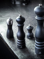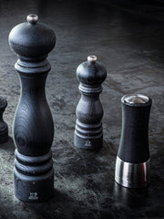 Ignite your table with textured allure Peugeot's Paris u'Select salt mill in graphite wood stands at a balanced 9 inches, its PEFC-certified French beech body playing light across natural grain and metallic reflections for a limited edition glow that's as tactile as it is timeless.