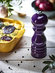 Twist open fresh flavor every time with Peugeot's Paris u'Select pepper mill. This 7-inch beauty in lush eggplant purple brings French elegance right to your table. We chose it for the PEFC-certified beech wood body, lacquered glossy and smooth to the touch. Pair that with the genius u'Select base offering six precise settings, or dial in anything in between for the perfect grind, from fine dust to coarse cracks.
