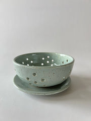 Fresh berries straight from the market deserve a presentation that celebrates their juiciness without the puddle on your counter. RachaelPots created this large berry bowl with an integrated dish to handle exactly that. The generous 8-inch wide bowl features drainage holes arranged in a delicate floral pattern, letting excess water escape while keeping your strawberries, raspberries, cherry tomatoes, or grapes perfectly fresh and ready to serve. The paired small plate catches every drop, making it ideal for rinsing and displaying seasonal fruit on the table.